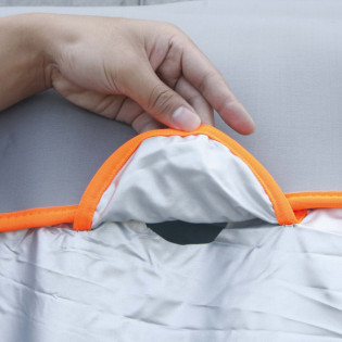 3- Assurez un ajustement parfait : Fixez les bords élastiques sous le châssis pour maintenir la bâche bien en place.